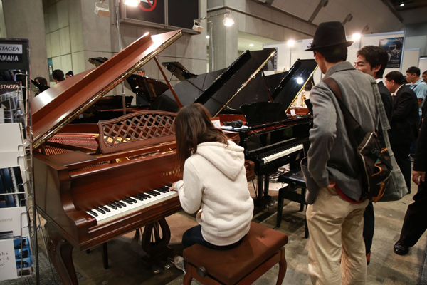 鍵盤ゾーンの最大ブースは、日本が世界に誇る2大メーカーのYAMAHA、KAWAI。親が付き添って子供が試奏する姿が多く見受けられ、いまだ子供にとってピアノは憧れの存在であることに変わりはないのだなと感じた。