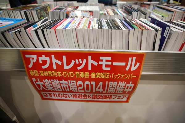楽譜や音楽雑誌のバックナンバー、楽器のアウトレット品などを販売するアウトレットモールも人気だった。