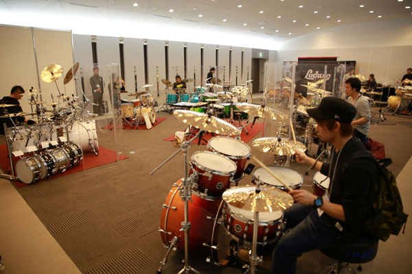 メイン会場に隣接したレセプションホールには、「ドラマーズ・パラダイス」と銘打ったドラム試打場が二部屋設けられていた。