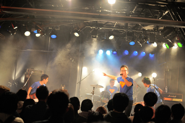 この勢いのままに4曲目は「Hey、Jyoji!」。JYOJI-ROCKのことを歌ったこの曲。奇しくもJYOJI-ROCKの会場となったこの吉祥寺ROCK JOINT GBで、彼らがまたこの曲を演奏するのだ。感動しないわけがない。会場を見渡してみたが、ステージ以外を見ている観客など一人もいなかった。私も慌ててステージに目を戻す。ステージで起こることを、一瞬たりとも見逃すわけにはいかないのだ。