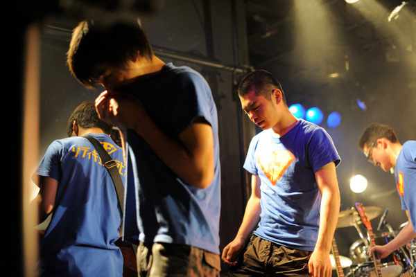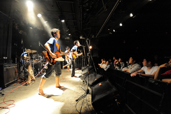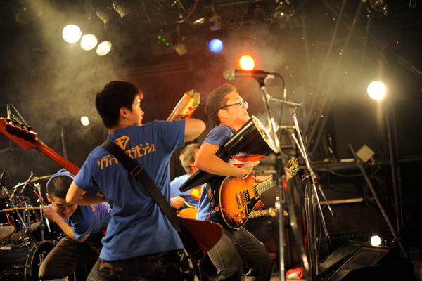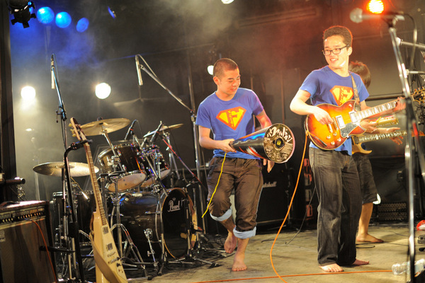 ここまで聴いて、会場のテンションはMAXのままだ。バンドも観客も全力で、そこにある音楽を共有しようとしている。そして「青いケツ」。歌詞の通り「壁は全て壊すのだ」とでも言いたげなサウンドの絡み合い。疲れも見せず、最後まで突っ走る。