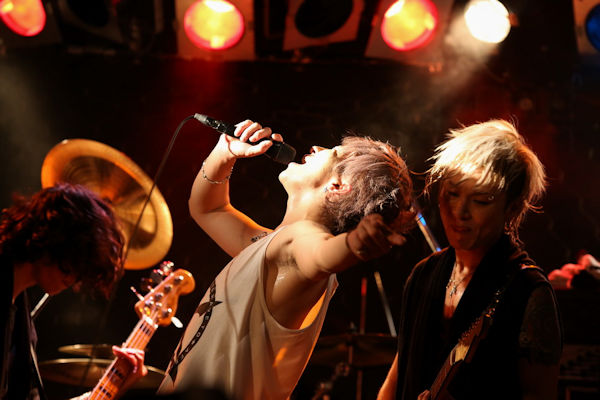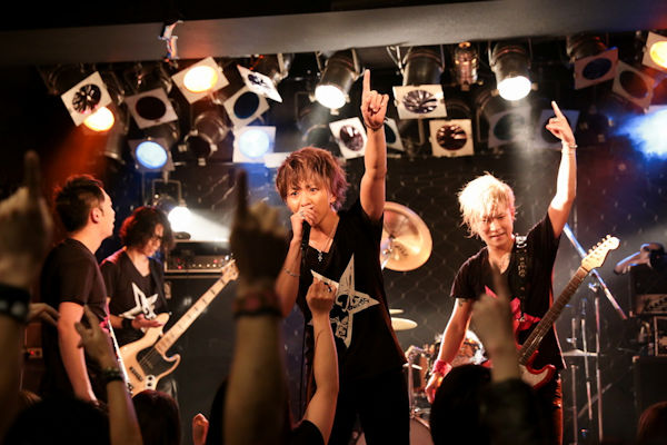 須賀勇介(Guitar)、時雨(Bass)、雄志(Vocal)、TOMO(Guitar)、成華(Drums)