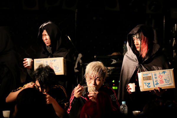 今回のレド☆チャレは 『人間はライブ直後にそばをどれだけ食べる事が出来るのか・・・ガチンコ激突!椀子そば対決!!負けたら費用全額自腹~!!』ということで全力ライブ後の疲弊しきったメンバーが10分間にどれだけそばを食べられるかに挑む過酷な競争が展開された。