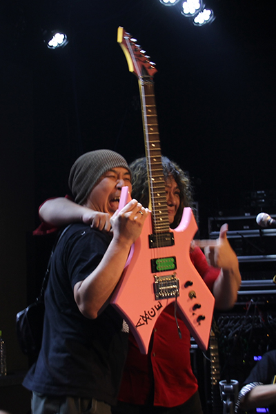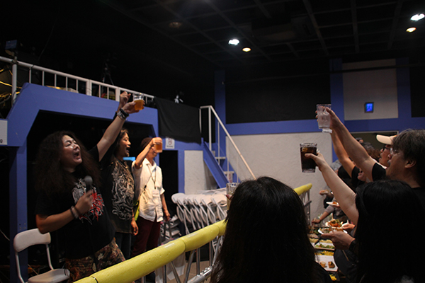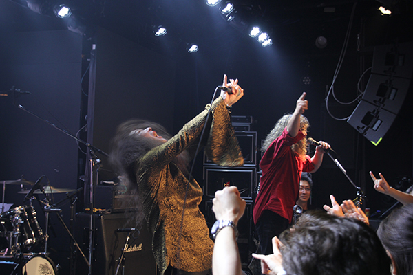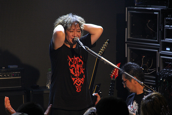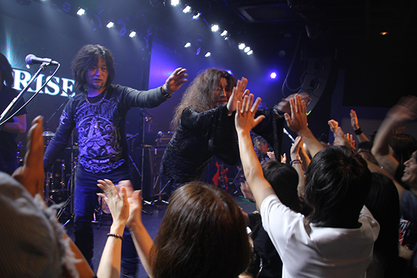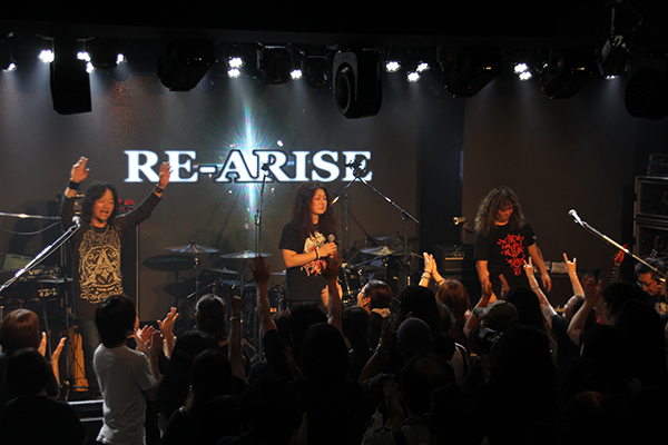 完成したアルバムは『RE—ARISE II』というタイトルになり、レコ発ライブとお祝いパーティーが同時開催された。ライブのMCでは、クラウドファンディングの経緯と御礼があり、ジャケットを書いた漫画家喜国雅彦氏とのジャケットデザインの話や、ファンディングの出品ギターのお渡し会なども行われた。また、曲の間にもたくさんのMCがあり、各メンバーの声が聞けた。メンバーもファンも終始笑顔だったのが印象的な日となった。その様子をフォトレポートにてお届けしよう。