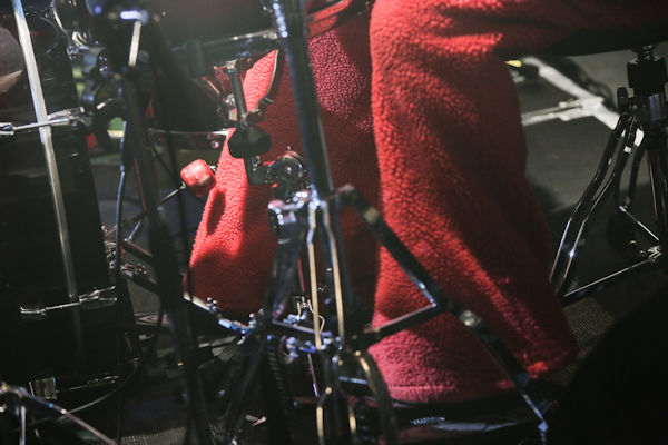 「はじめましての人は、はじめまして。いつもいる人はいつも、こんにちは…」演奏とは対照的な緩いトーンで、来場者に挨拶するむらたたむ。「すごい感動しています、なぜかと言うと、顔だらけだから…」そして写真を撮って「ライブなう」とTwitterでつぶやくと(参照:https://twitter.com/tamu_murata_dr/status/864080809057067009))、2曲目へ。BABY METALの「KARATE」。一つずつの腕の振り、脚の踏みがダイナミック!バスドラムがずしずし響く。「かっこいいですよね、ひたすらソイヤソイヤ戦うんだというテーマが私にぴったりなんじゃないかと」とMCで話した通り、この曲はドラマー・むらたたむのプレイスタイルにすごくマッチしている。