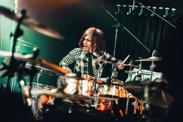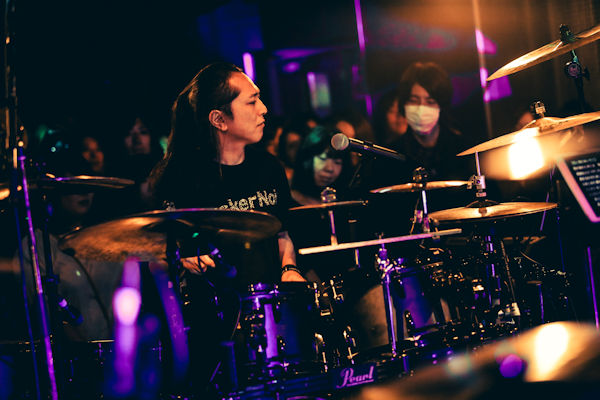 続いてはSakuraの「空と君のあいだにハイスタバージョン」。大胆なパンクアレンジを施され、今にもモッシュが起こりそうなノリノリの場内で、どんなスタイルのドラムも魅力的な彼のセンスに脱帽する。ラストはshujiの「ラブ・ストーリーは突然にメタルバージョン」。「さっきの(LOUDNESS)とほとんど同じやん(笑)」と言いながらもスピーディーながらもどっしりとした貫禄のプレイを披露し、サビではヘドバンするオーディエンスも続々。