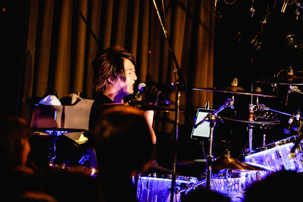 「BEYOND」を経営しているベースオントップグループのスタジオで行われているドラムレッスンの講師でもあるSakuraのイベントということで、この貴重な夜に駆け付けたのは、アーティストのファンはもちろんのこと、ドラムスクールの生徒さんたちやドラムスティックをかかえたキッズ、お母さんと共に参戦したなんと8歳という未来のドラマーまで様々。会場は超満員になっている。