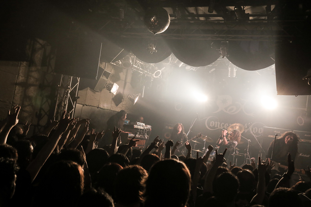 2017年10月にリリースしたアルバム『Tears of Messiah』にともなうConcerto Moonのツアー、『TEARS OF MESSIAH TOUR 2018』のファイナル公演が、2018年5月26日に渋谷REXで開催された。ツアーファイナルであると同時に、2011年に加入したボーカリスト久世敦史が、この日を最後にバンドを去る事となった。彼のラストライブとなったが、感傷的になることもなく、ステージもオーディエンスも一丸となり、拳を振り上げる熱い一夜となった。2時間近い本編終了後、客電が点いてもアンコールを求める拍手はずっと鳴りやまず、急遽メンバーがステージに登場。ファンの大きな声に応えた。当日の様子をフォトレポートにてお届けしよう。