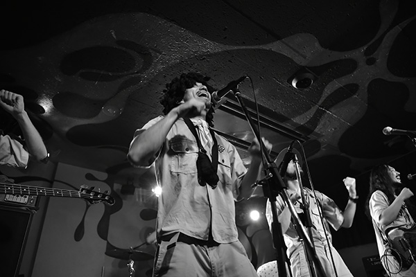 登山が「登場しただけで、この盛り上がり。もうライヴしなくてもええんちゃう?じゃんけん大会とかでも盛り上がりそうやな……」と笑わせ、1曲目「Let’s go the Camp」で元気いっぱいにスタート。2曲目「釣り」、3曲目「Party time」と続けて盛り上げた。