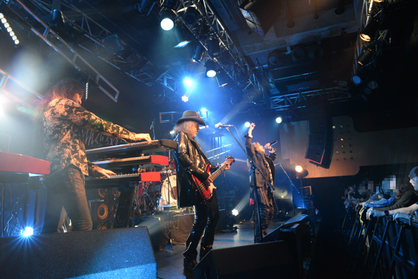 『35th Anniversary Tour』の20箇所目の会場となったduo MUSIC EXCHANGEのフロアは、開演前から立錐の余地もなく、熱気が充満している。定刻となって場内が暗転しオープニングSEが流れた。オープニングSEといっても、このツアーのために新たに用意されたオープニング曲に繋がる序奏である。その序奏のなか、メンバー達が登場!最後に西田“MARCY”昌史(Vocal)[以下:MARCY]が両手の拳を突き上げながらの入場だ。メンバー全員が気迫に溢れた表情を見せている。