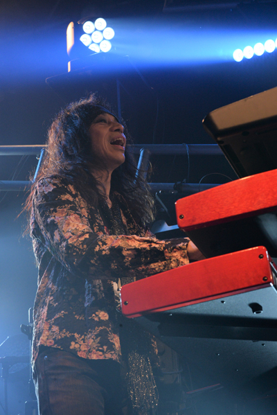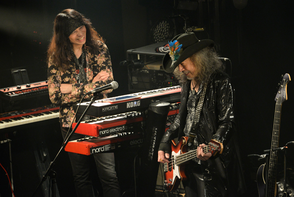 このツアーのタイトルでもある「THE STORY GOES ON」でスタート!石原“SHARA”愼一郎(Guitar)[以下:SHARA]の手首ごと大きくビブラートさせて奏でられたイントロが唸るように鳴り響く。永川“TOSHI”敏郎(Keyboards) [以下:TOSHI]は、5台のキーボードを左右に配置、後方にはレスリー・スピーカーを備え付けた東京公演ならではのセッティングを駆使し、体を上下に激しく揺らしている。甲斐“KAI”貴之(Bass)[以下:KAI]のピッキングから弾き出される重低音は心地よいリズムを刻んでいる。ダイナミック&パワフルなドラミングで轟かす工藤“KUDO”義弘(Drums)[以下:KUDO]は、この日も圧倒的な存在感を放っている。そしてMARCYは、いつものように表情豊かにしなやかなアクションで魅せている。