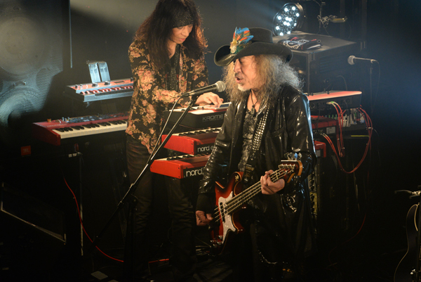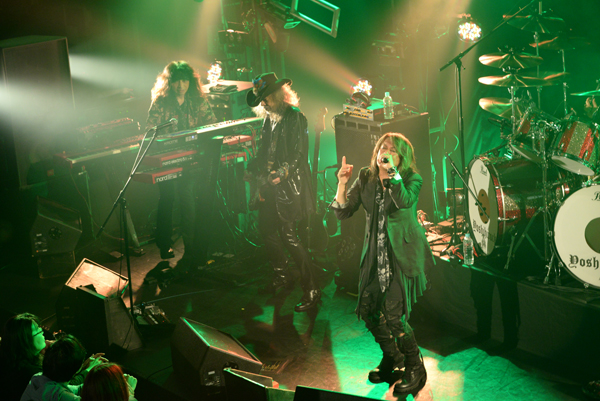 シーケンサーからリズムが送り出され、そこにピアノが絡み合い「旅人のララバイ」が続く。噛みしめるように歌うMARCY。ステージ上のライティングが色とりどりに変化し幻想的な空間を演出するなか、SHARAの右手がTOSHIを指した。TOSHIのソロの始まりだ。あまりに美しいメロディが会場内に響き渡る・・・。TOSHIとSHARAによるソロの掛け合いで、エンディングに向かうパフォーマンスは圧巻であり、ライブ序盤のクライマックスとなった。