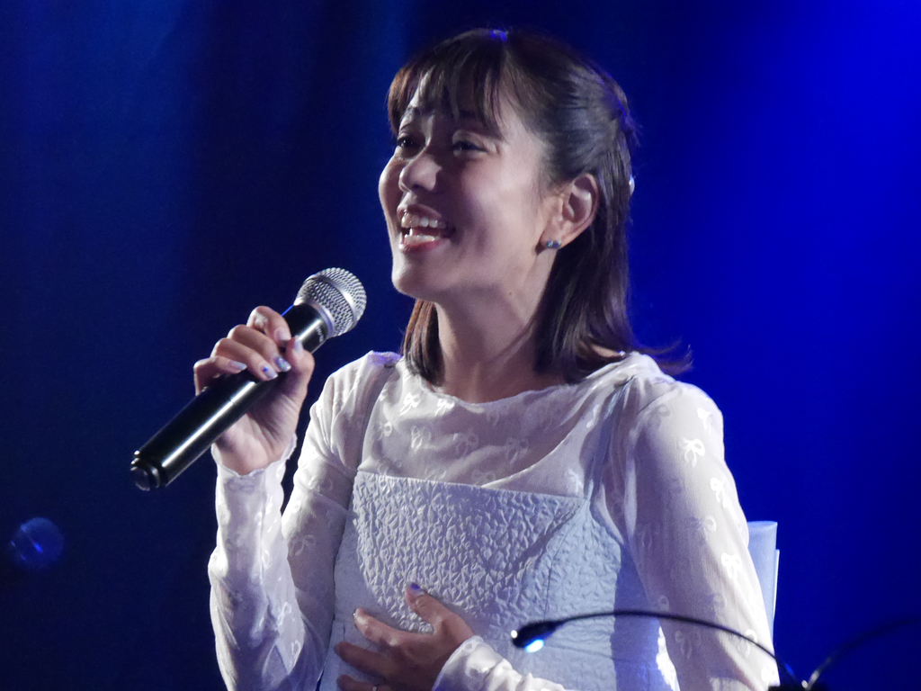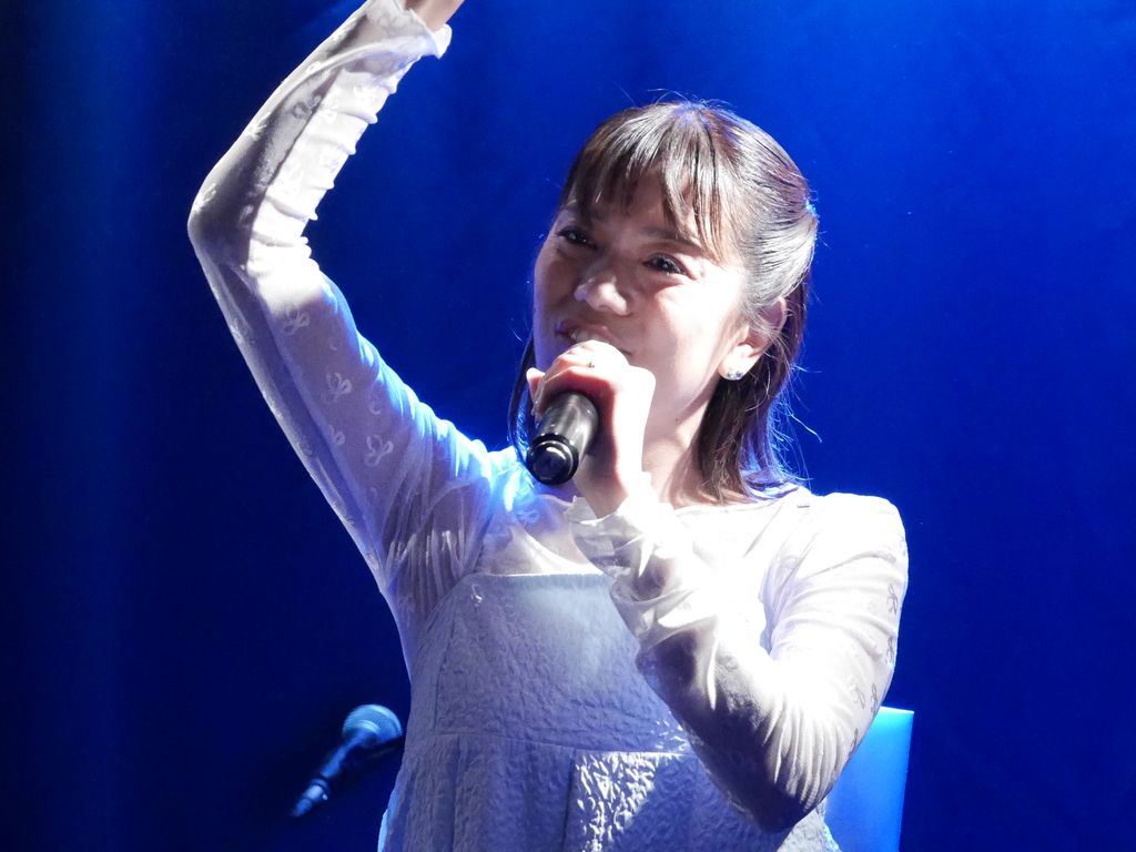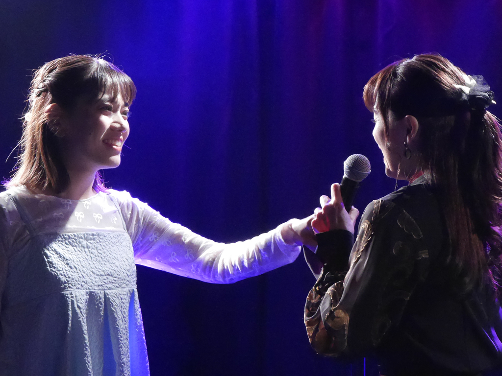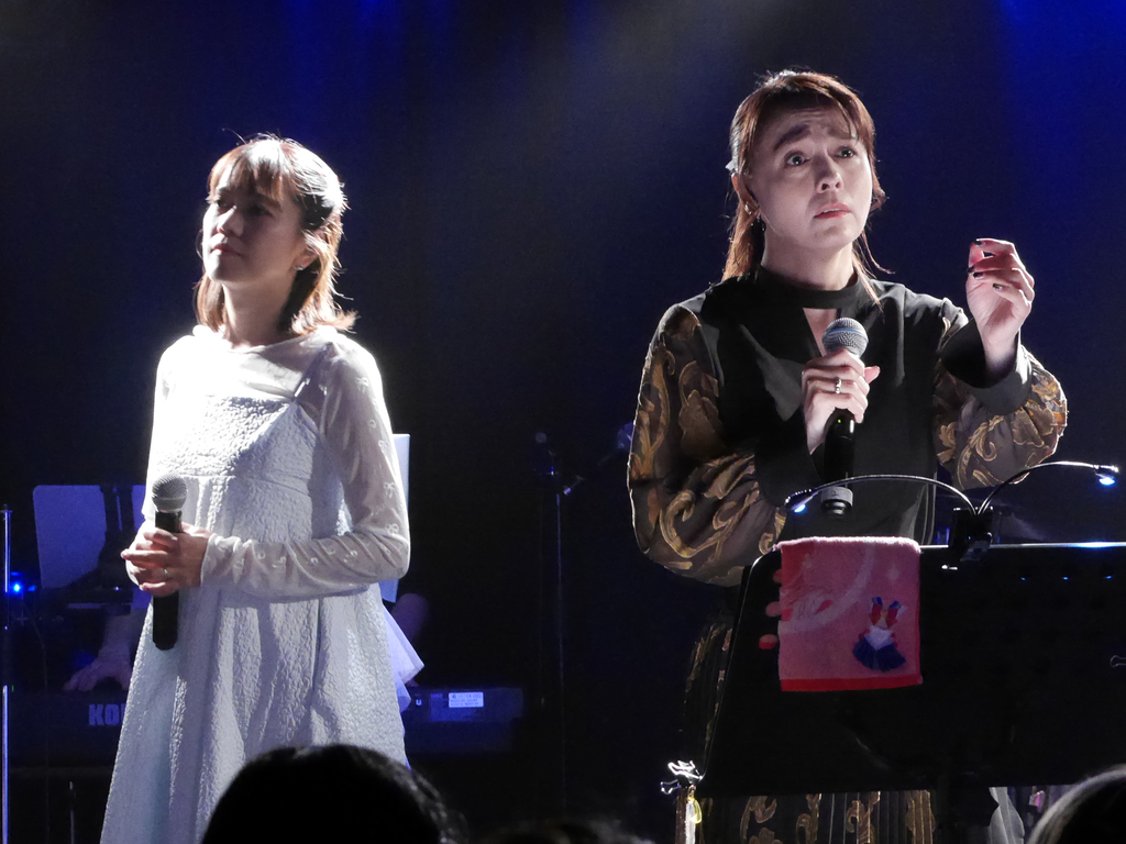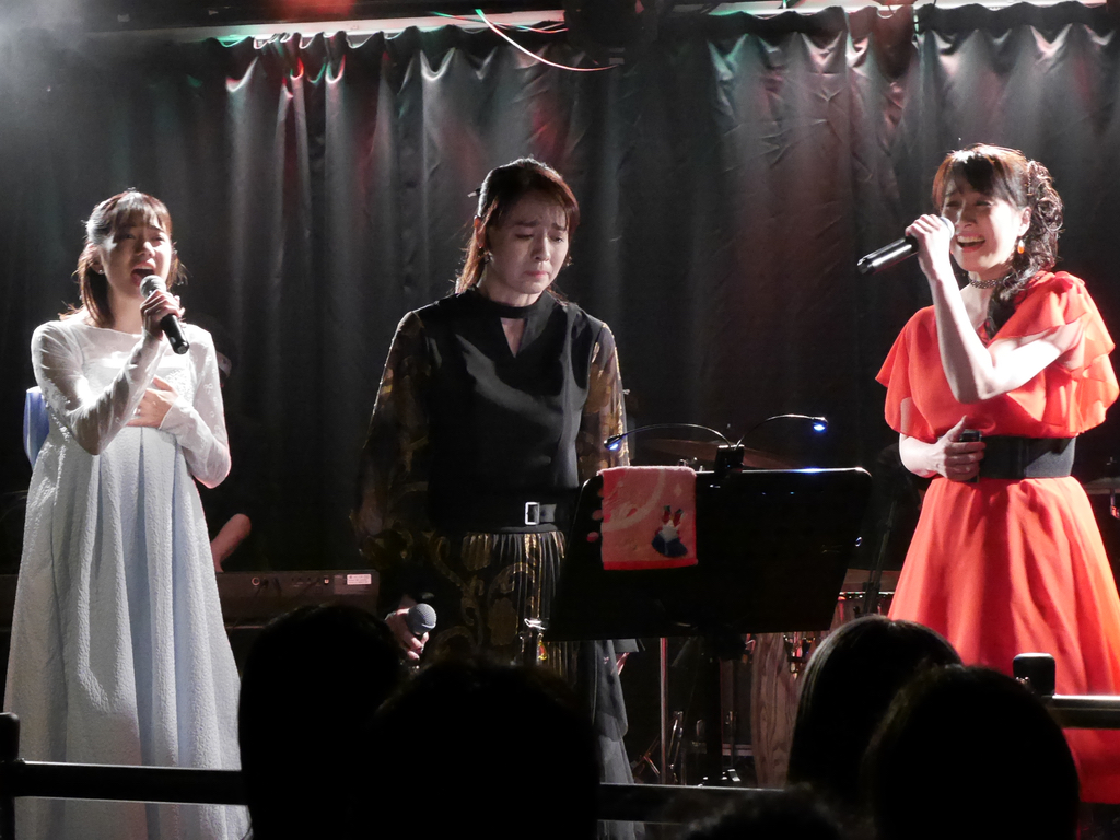 昼公演は14時にスタート。オープニングナンバー「My Will」が鳴り響くと、会場は一気にライブモードに突入した。続く「Forever」は、いずれも彼女のソロアルバム『Voice of my heart』からの楽曲だが、長年のファンからも熱い声援が飛ぶ。セラミュの名曲「旅立ち」のイントロが流れた瞬間、観客の多くが感慨深げな表情を見せていた。さらに岩名美紗子、赤嶺寿乃が加わり、「いい子はやめた」「思い出してあなたを」と続くと、その歌声にセラミュの世界へと引き込まれていった。
