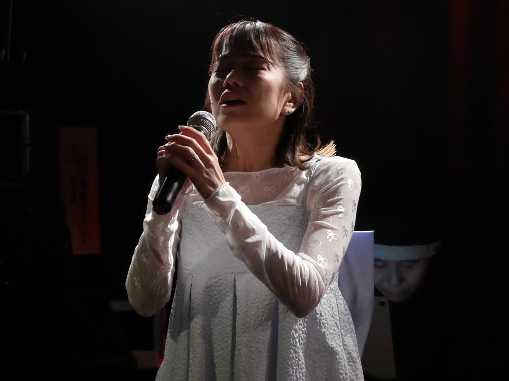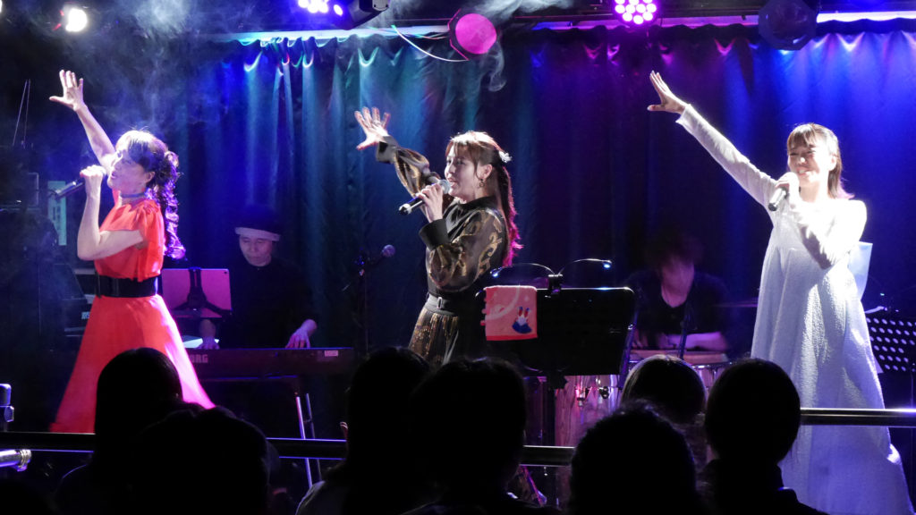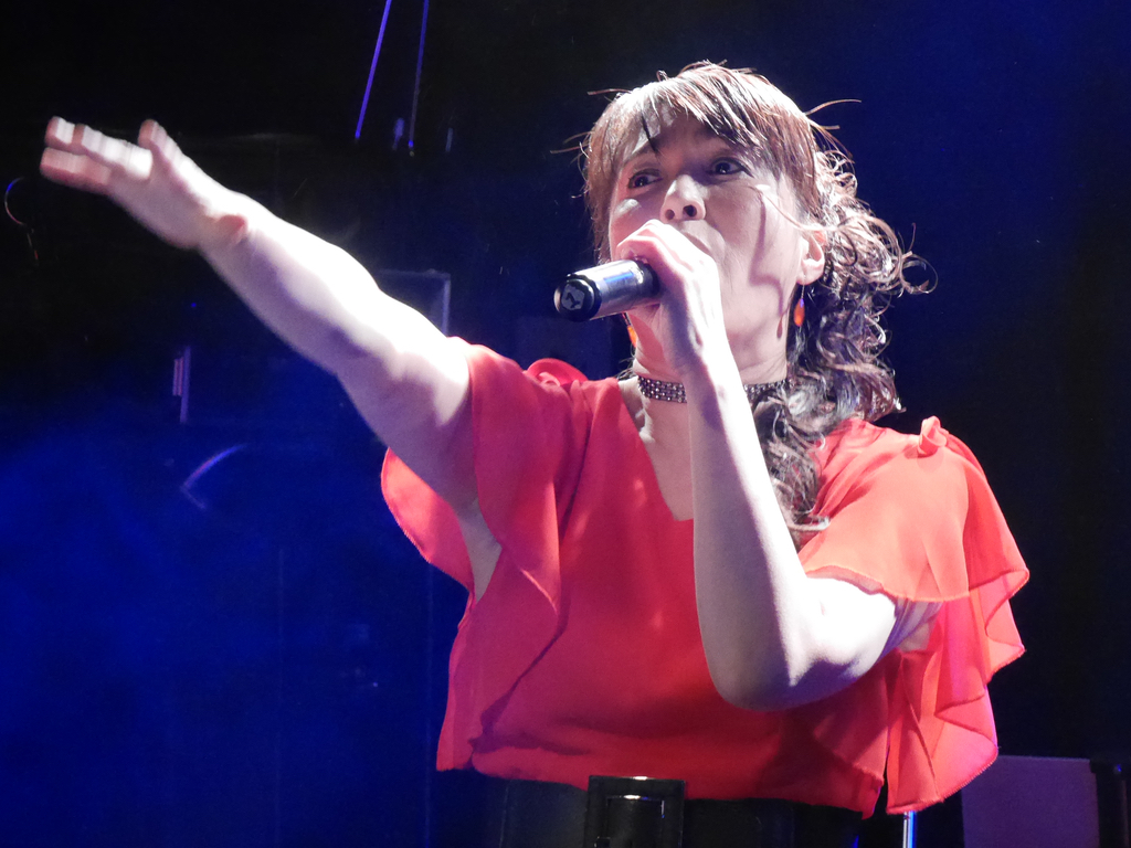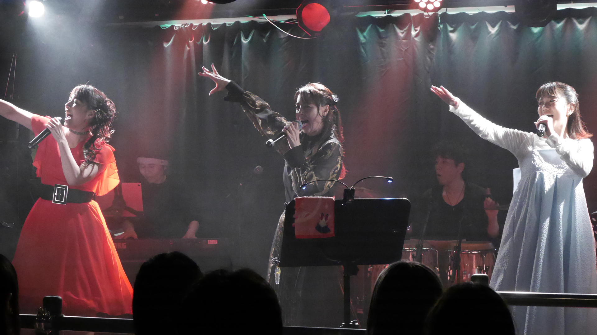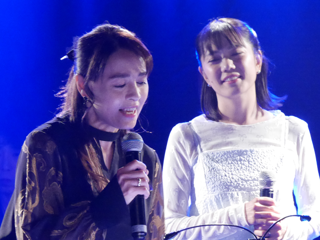 昼公演は14時にスタート。オープニングナンバー「My Will」が鳴り響くと、会場は一気にライブモードに突入した。続く「Forever」は、いずれも彼女のソロアルバム『Voice of my heart』からの楽曲だが、長年のファンからも熱い声援が飛ぶ。セラミュの名曲「旅立ち」のイントロが流れた瞬間、観客の多くが感慨深げな表情を見せていた。さらに岩名美紗子、赤嶺寿乃が加わり、「いい子はやめた」「思い出してあなたを」と続くと、その歌声にセラミュの世界へと引き込まれていった。