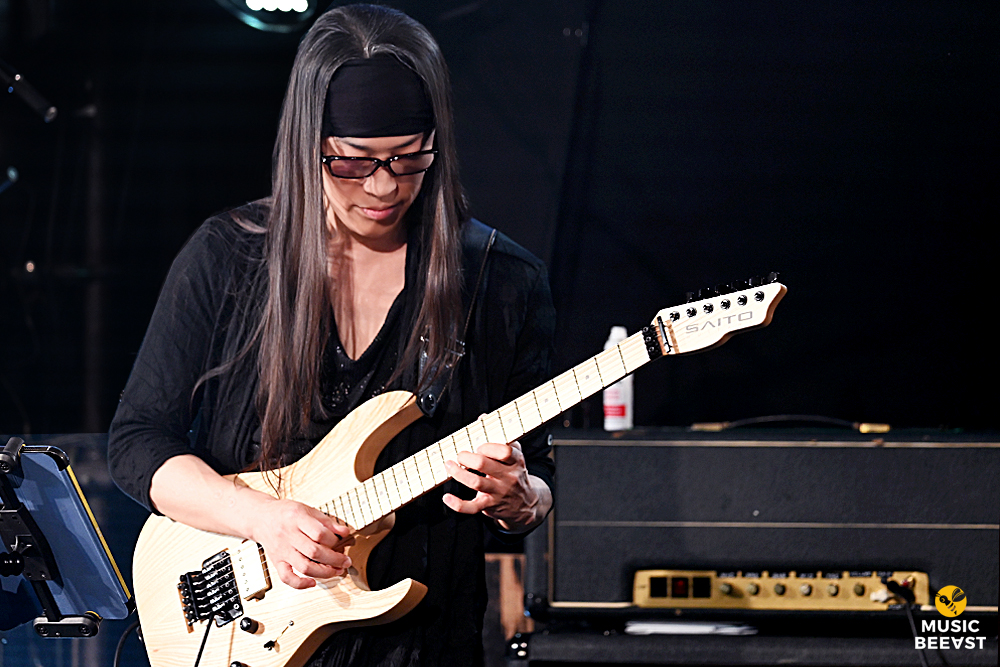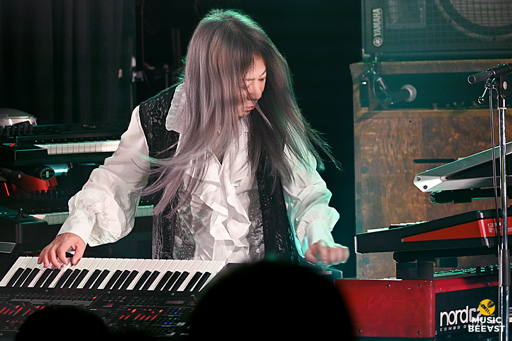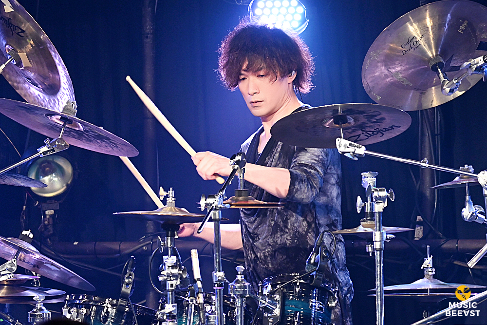 インストゥルメンタルナンバーの「Estacion」では、YUHKIが拳を突き出してオーディエンスをあおり、シンセサイザーのテクニカルなフレーズが炸裂する!そして椅子から立ち上がった原澤 秀樹が、テクニックとエモーションを融合したドラムソロをスタート。ドラムソロの途中でオーディエンスとの掛け合いもあり、会場の熱量をグッと押し上げる。ステージ上のYUHKIからも「ヒデキ完璧!」と声が上がる。