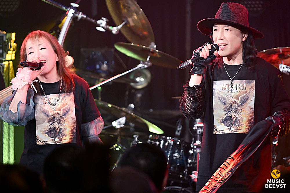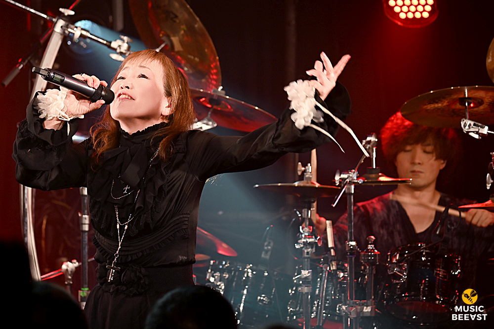 第二章の「SKYWARD PRAY Chapter2 The Quiet Before Ascension 第二章 〜静寂の翼/甦る翼〜」からライヴがスタート。世良 純子の歌声が放たれた瞬間、会場の空気が一変し、ALHAMBRAの世界へ引き込まれる。続けて第三章の「SKYWARD PRAY Chapter3 Skyward Pray 第三章 〜孤高の天使〜」へ。かつて傷ついた翼を抱き、地を這うような悲しみを知る天使が、再び空へと指を伸ばす物語に、オーディエンスの目の前で命が吹き込まれていく。