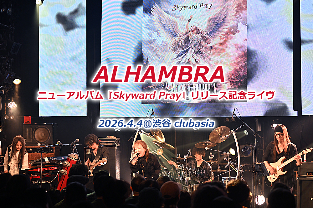 天空へと捧ぐ祈りの旋律……。2026年4月4日、春の雨が東京を濡らしている。渋谷の喧騒を抜け、会場のclubasiaへ。春の夜気が少し心地よく、どこか特別な夜になる予感がする。この日、開催されるのは、2026年3月26日に発売となったALHAMBRA(アルハンブラ)の5枚目となるニューアルバム『Skyward Pray』リリース記念ライヴだ。
