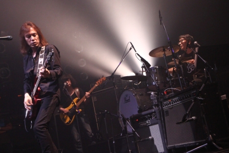 5曲目は80年代初頭、CBSソニーの傘下のレーベル「FITZBEAT」時代の懐かしい曲「GET READY」。一昨年リリースしたミニアルバム「The Double Clash」にリアレンジされて収録されている曲だ。大人のロックといった雰囲気にアレンジされたキーボードソロのイントロで始まり、オルガンのブルースコードのハーモニーに、タイトに刺さり込むようなドラムとベース。サビは会場全体で大合唱。私も歌いながら、リズムに合わせてシャッターを押した。