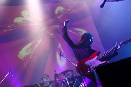 いよいよ開演!宮原学の「オー!イェー!」のかけ声と同時に、重厚なギターの音が響き、1曲目「LOOKIN’ FOR LOVE」がスタート。柴田俊文のオルガンの音がヘヴィさを助長する。なんてゾクゾクするようなストレートさ。そのまま2曲目の「WITH I KNEW SATISFACTION」に突入。これぞブルースといった、ディストーションのかかった渋いギターがたまらない。鳥肌が立ってくる。