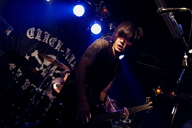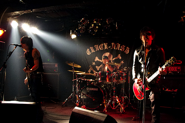 そんな編集長太鼓判と言っても過言ではないCLACK-NASHだが、シングル『Tokyo New Rose』をリリースし、ドラマーBILLYが主催するレーベルLove shit musicの『POWER TO THE MUSIC tour2012』で東名阪サーキットを実施中だ。初日の大阪公演を、フォトレポでお届けしよう。この日はCLACK-NASHの他に、Sleaze PartyやDOMMYなどのバンドが登場。ツアーの最終日は、11/24(土)に高円寺MISSIONS。ガツンと一発殴られるような、そんなLIVEイベントになることは間違いない。急に冬へ突入しそうな寒い東京だが、高円寺で熱き夜を楽しもうぜ!