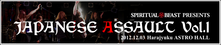 ヘヴィ・メタルを愛し、メタルファンからの厚い信頼を得ているレーベル、SPIRITUAL BEAST。そのSPIRITUAL BEASTが、2012年を締めくくる素晴らしきスラッシュ・メタルのイベント「JAPANESE ASSAULT」を主催した。今回のVOL.1では、大阪(12/01)・埼玉(12/02)・東京(12/03)の全3公演が行われ、BEEASTでは最終日の東京公演(原宿ASTRO HALL)を取材。その熱きイベントの様子を、フォトレポートでお届けしたい。会場に充満した熱気が、少しでも伝われば幸いだ。