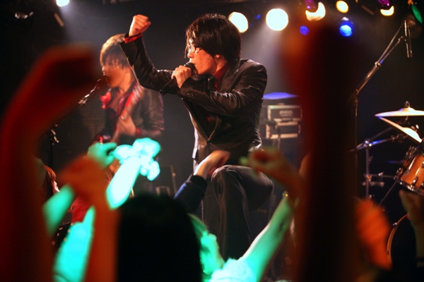 ノブの煽りで「モンスターピーポー」「横濱純情物語」と続けざまに攻め立て、「強引ダーリン」で一撃を喰らわす。会場全体でヘッドバンギング、それを見たつよぽんやカンちゃんの高まるパフォーマンスと、酸欠寸前の激しい熱気が渦巻く。そして本編ラストの「リグレット」では、ファンと気持ちを確かめ合うように、感情豊かに熱演するノブ、つよぽん、カンちゃん。優しげな表情で歌い上げるジンにゆったりと心を委ねていた。