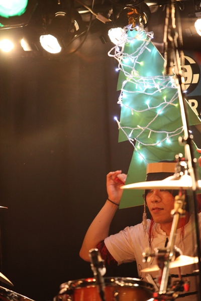 そして、マグヴェリーの芸人顔負けのギャグセンスが存分に発揮されるネタコーナー『日曜ドラマティック劇場』へ。サンタコスプレが妙に似合うジンに、段ボール製のトナカイに扮したつよぽん、つけ鼻を付けて外人になりきるカンちゃん。手作り感満載の小道具が妙に愛おしさを醸し出している。そして、ノブのどうにもこうにも的確なツッコミに他メンバーも時折思わず笑ってしまっている。こうした人柄が、バンドとオーディエンスとの距離をさらに縮めているように思えた。