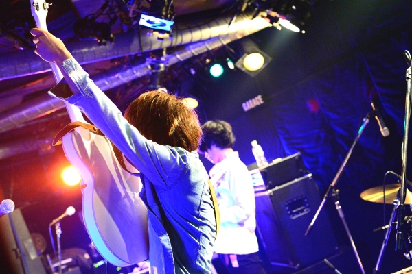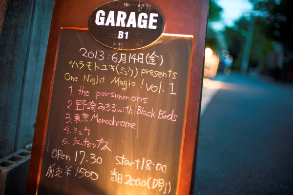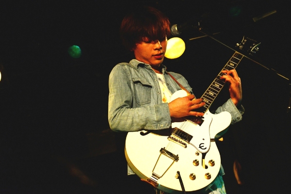 活動”再開”。それは、ファンにとっては1年ぶりの”再会”だ。この日のレコ発は彼の盟友・ハラモトユキ(ミュウ)の企画「One Night Magic!」の第1弾。対バンにはYHMF2012ファイナリストのthe persimmonsら実力者たちが名を連ねたほか、全出演者の音源を収録したCD-Rが来場者に無料配布されるという粋な計らい。そして満杯のフロア。復活の舞台は、整った。