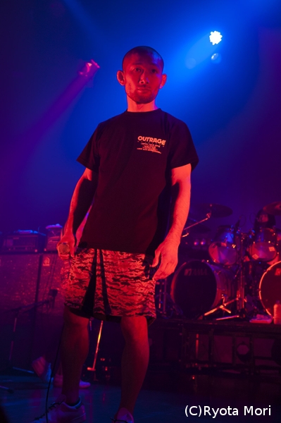 ステージもクライマックスに差し掛かった。「次は皆で歌える曲だ!歌わなかったら、永久に(曲を)続けるからな!」という橋本のMCがハッパを掛け、サビのコーラスに強烈な歓声がフロアから押し寄せた「RISE」から「YOU SUCK」へ。先程プレイされた「HOW BAD?」のサビにある「Mother Fucker!」という強烈な言葉しかり、この曲のサビで叫ばれる「You Suck!」という言葉しかり、汚く荒々しい言葉がOUTRAGEにはよく似合う。これぞ、DEEP.T.M.が最初に叫んだ「King of Garage Metal」という称号に相応しいバンドであることの証明だ。
