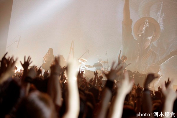 「FREE STAR」は新体制になっている彼らの思いが詰まった演奏になっていた。「to live」と続き「カタストロフ」「新世界」とアルバムからの楽曲が演奏される。そして最後は「白光」。「最後のその日まで、最後に吸う酸素、呼吸に希望を持って死ねたらと思います。人間の温かさを信じて死ねるように。祈りを込めて」とこの曲に込めた思いを語る。荘厳な音とまるで命を削りながら歌っているような歌声が響く。会場は圧倒的なパフォーマンスに魅せられていた。