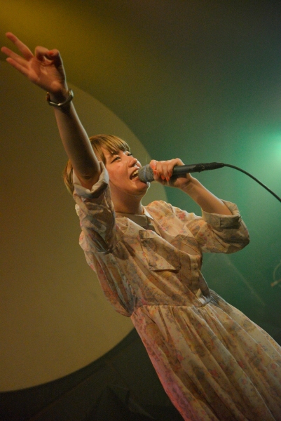 しっとりと聴かせた後は、愉快に元気いっぱいに、新曲「追い風」を披露。ポップで楽しくなるメロディは、何度でもリピートしたくなる(音源化切望!)。音だけでなくトークでもグルーヴの高まりを感じさせるSakuバンド。MCでは、天然なSakuにしっかりとバンドメンバーからツッコミが入ることで、これまでのソロライブではあまりフィーチャーされていなかった(?)Sakuの天真爛漫なキャラクターが際立つ。そして、9月からはこのメンバーにピアノが入り5人編成になることも明かされ、最後はメッセージ性の強い「アンサー」。バンドの魅力を存分に伝え、トップバッターの大役を果たした。