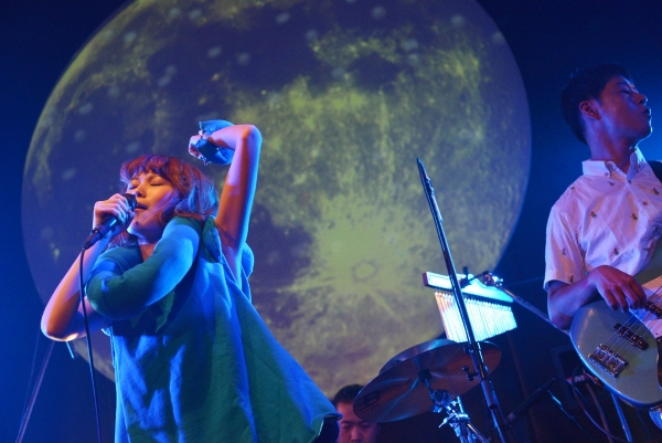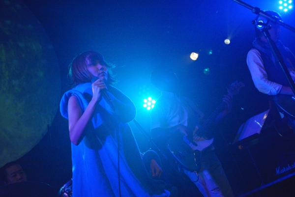 3曲目「あんのうん」では宇宙的なダイナミックサウンドにアンニュイなボーカルが楽しい。武井麻里子は体の動き、表情、全身で音楽を表現する。そして4曲目「空、緑」では躍動感あふれる楽曲に合わせて力強く歌い上げる。10月には現体制初となるニューアルバム『フルカラー』のリリースが予定されているblue marble。複雑なメロディが絡み合う、独自の世界観を堪能できた。