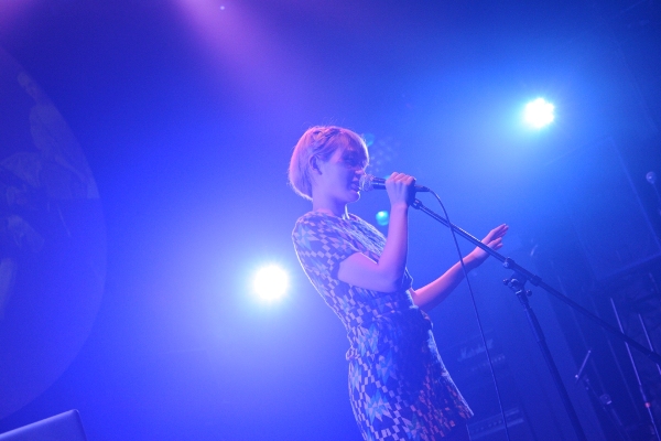 ステージからドラムセットやギター、ベースアンプが後方に撤去され、ガラ空きとなたステージにはデスクトップPCが1台。そこに、スラッと長身美女が一人立つ。続く3組目は水曜日のカンパネラ。スタイル抜群の女性ボーカリスト、コムアイ(Vocal)が”主演&歌唱”を務める音楽ユニットで、サウンドプロデュースにKenmochi Hidefumi、“何でも屋”としてVJなどを手がけるDir.Fを加えた3人で活動している。