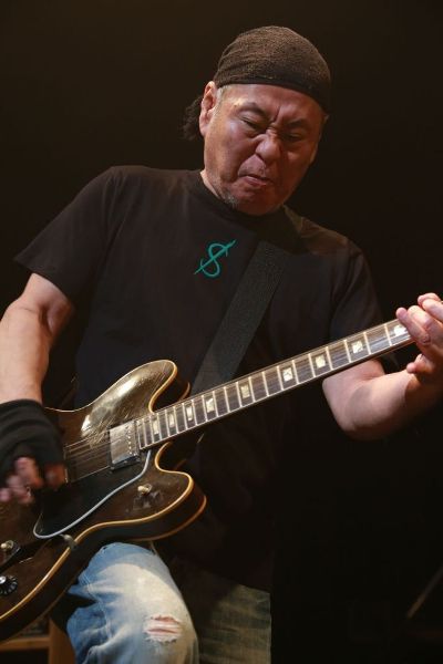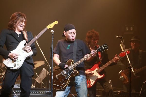 そして次のコーナーはフロントマンが2人ずつ組んでの<CORABORATION>。まずは宮原学&ichiroでB.B.Kingの「Rock Me Baby」。ブルースの名曲をギター2本で絶妙に料理。宮原学はたっぷりと間合いを取って野太い声を響かせる。2曲目はichiro&原田喧太で、Paul Mauriatの編曲で有名な「Love Is Blue(恋はみずいろ)」だ。名手2人が技を競うギターの魅力全開の演奏に、大きな拍手が巻き起こった。続いて原田喧太&宮原学はFreeの「Wishing Well」で、ブリティッシュロックの本道を披露。この<CORABORATION>コーナーを聴き終えて、The Guitar Crusadersでアルバムを出してほしいと強く思ったのは、おそらく私だけではないだろう。