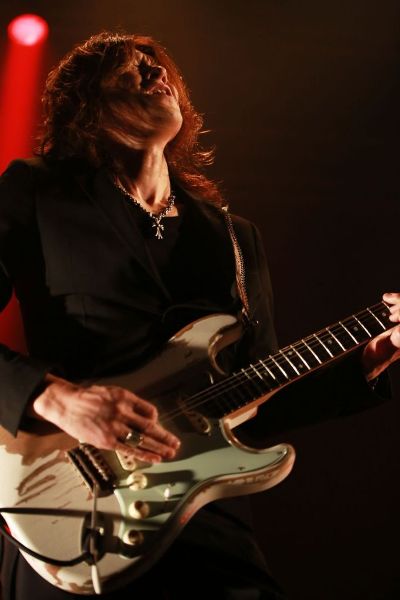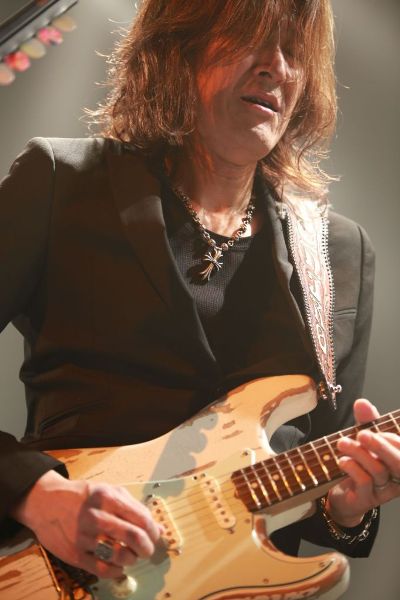 まずは、日本人初のGibson USAエンドースアーティストであり、THE SONS、長渕剛との活動でも知られるichiroから。1曲目は史上最強のギタリスト・Jimi Hendrixの「Angel」で、ブルースギターの美しすぎる音色が全開に。2曲目はデビューアルバムから「Want Your So Bad」。長身を崩さずギターを操り、艶のある高音を響かせる姿にすっかり見とれてしまう。