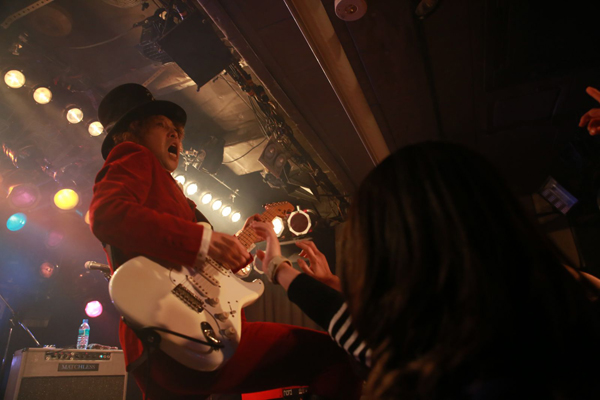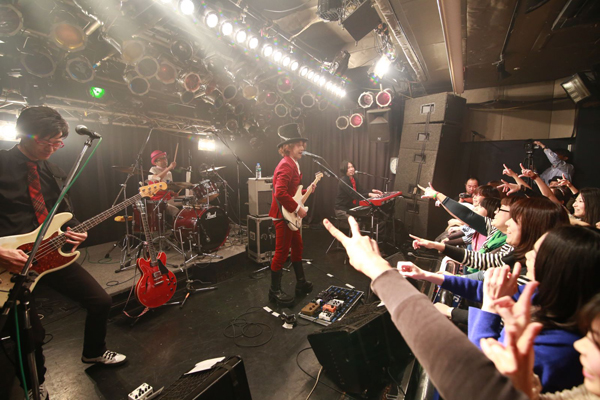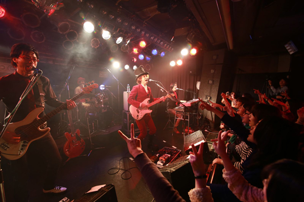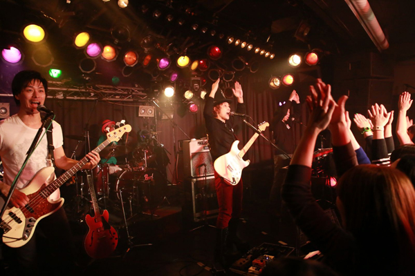 中盤には新曲「恋は1000%」を披露。この曲中は、会場のファンにスマートフォンでの動画撮影を許可し、指定サイトへ投稿をしてもらう企画だ。予定のセットリスト後に、幕は降ろされた。しかしアンコールの声の中、突如スクリーンに結成当時からの古い写真が映し出される。「お客さん3人…」「僕たち20歳になりました」など、笑いを誘うも胸にグッとくるコメント。アンコールは3曲を演奏し、結成当時からのお約束ラストナンバー「バイバイ タートルズ」で終演。さらにダブルアンコールがかかり、激しく盛り上がる曲「I LOVE ROCK’N ROLL」で、会場の興奮は最高潮へ!