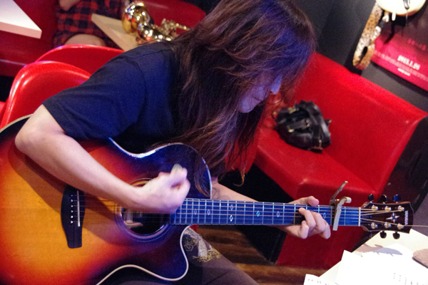 そして英三先生は、本誌でも今夏からコラムをスタート。EIZO Sakamoto「もう一つのアニソン文化~EIZO Sakamotoが地球の裏側で見たものは」というタイトルで、親日で有めない南米での活動を、紹介するコラムです。そんな英三先生からマンツーマンの個人レッスンを受けることになったあみ。場所はロックバー「Malmsteen」。緊張の初レッスンはいったいどのような内容だったのでしょうか。その様子をレポートしましょう!