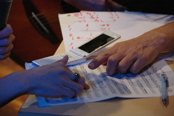 歌詞をみながら、歌のポイントとなる部分や、意識すべきアクセントを伝える英三先生。百戦錬磨のキャリアを誇るだけあり、レコーディングを控えたあみに的確なアドバイスはさすがです!そんなレッスンの成果を、あみはレコーディングではきっと発揮するでしょう。いよいよ次の回では、そんなレコーディングの風景をお届けします。お楽しみに!