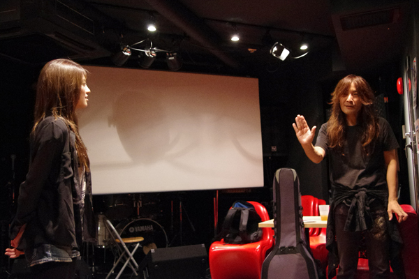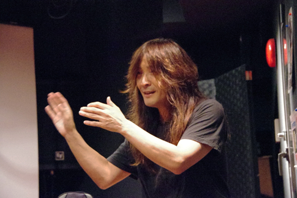そんなあみをサポートする講師は、世界のさかもとえいぞう(以下、英三先生)!言わずもがな、日本を代表するヘヴィメタルバンドANTHEMのカリスマ的ヴォーカリストであり、アニメソングのメタルアレンジでお茶の間でもブレイクしたアニメタルのヴォーカリストでもありました。今も、個人活動としてアコースティックギターによるソロ演奏をおこなったり、EIZO Japanというユニットで日本国内以外に、海外遠征の活動をおこなったり、さらに今年はアニメタルの再来と言われる哀旋士も結成。ロック界第一線のすごいヴォーカリストです。