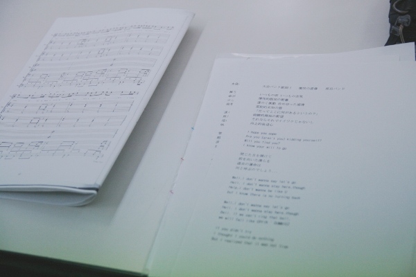 小野崎:最初に作った曲は失恋の歌で、実体験です。基本的に自分自身のエピソードから作ることが多いです。バンドを組む時には、予めできあがっているメロディがあって、「こういう題材で歌詞を書いて」と言われるので、それに合った言葉を選んで歌詞を書きます。普段からボーッとしてる時にふと浮かんだ言葉をメモするようにしています。
