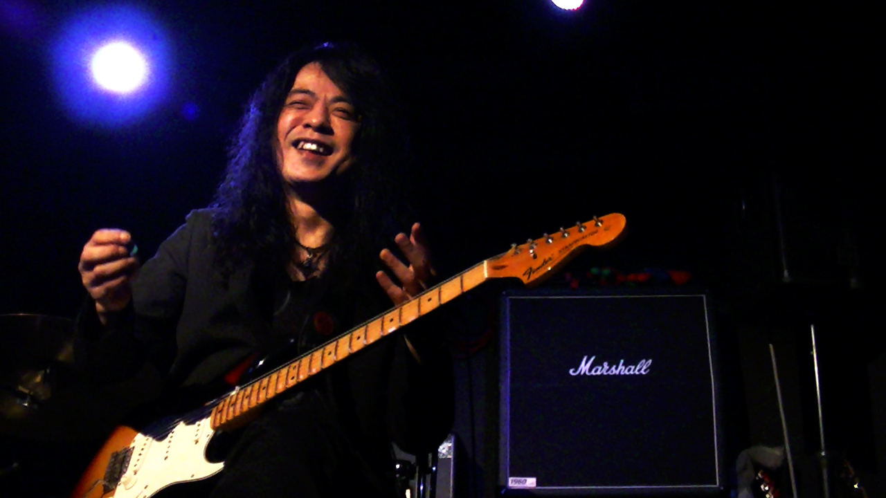 そしてプレミアムなソロ公演なので、何とGary Mooreの名曲「Parisienne Walkways」が披露されます。中村達也特有の、甘く切ないギタートーンが最高に映えるナンバー!さらにJ-POPから、まさかのSpeed「White Love」へ。このナンバーが流行っていた当時、こんなに若い子が努力の末、これほど説得力のある唄を披露しているのに、自分はギターでどれだけの物を披露できているのだろうか?と自問したことから、自身の表現力を見直すキッカケになったというエピソードが伝えられます。