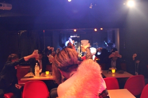 前回より若干時間を押しての開宴となった今回のLove Loveフライデー、嵐の前の静けさを象徴するような、リラックスした雰囲気がMalmsteenに流れる。が、折角の宴会にそんな空気等無用とばかりに、司会の大入袋舞よりまずは第一声の乾杯の音頭が響き渡る。「では、ご唱和ねがいま~す!せ~の、Love Loveフライデー!!」前回の好評にて味を占めた彼女は、なんと乾杯と共に乱入を宣言、宴会は嵐の展開を見せ始めた…