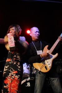 そのパワーにまるで圧倒されるかのように、大きな気迫を見せる参加者の大きな歓声が、Malmsteenを包む。力強い拍手に、気分はさしずめ武道館コンサートのステージといった大入袋舞。その気持ちが伝播し、楽器を持ってステージに乱入するホシ氏、ジュータ・ボッタス氏、さわだ氏。その様だけで異常なまでのグルーヴとパワーを放出。更に想定外のダンボール…いやアンコールが乱れ飛び、彼女の代表曲「酒やけの女」へ。興奮冷めやらず絶叫し続けるジュータ・ボッタス氏を筆頭に、大きな歓声に包まれたステージに、大入袋舞も思わず感激。そして、決めの一言にて、この盛大な宴に幕が閉じられた。