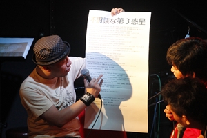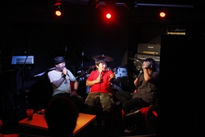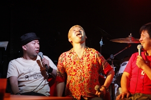 早くも3回目を迎えたこのイベント、正念場ともいえる今日の、抱腹絶倒の三平×2(みひらさんぺい)、ユンボ安藤、チャンス大城の3人の行方やいかに?笑いとロックを求めて集まった観衆の中、今日も3人はステージに現れました…