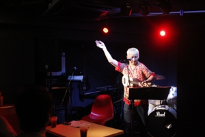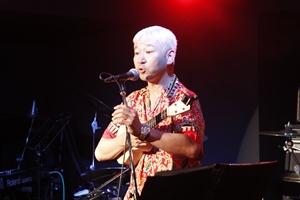 続いて登場したのは、ウクレレえいじ。高倉健のモノマネを鉄板ネタとしてもつ彼ですが、この日はまず、忌野清志郎のトリビュートアルバム「ウクレレ清志郎」よりウクレレをかき鳴らしながら「トランジスタラジオ」を熱唱。ウクレレのほのぼのした音色と、堂に入ったウクレレえいじの声のギャップはなかなかロックな雰囲気を醸しだし、じっくりと音を楽しませてくれます。