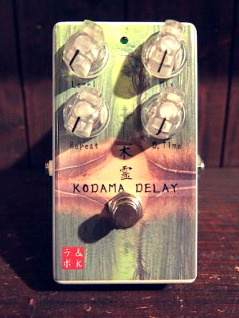 近藤:新商品の「雷神ディストーション」と「木霊ディレイ」になります。雷神ディストーションはichiroさんから『長渕剛ARENA TOUR 2014 ALL TIME BEST』に向けてオーダーして下さったディストーションが最初の機体で、それはアリーナやドームなどの大会場向けのセッティングにしてあるのですが、それを一般の会場向けにチューニングし直したペダルになります。今年の『長渕剛 10万人オールナイト・ライヴ 2015 in 富士山麓』でもichiroさんのボードに入っています。10万人の方の前で自分たちの音が響くのはビルダー冥利に尽きます。市販版の雷神も既に木霊と共に『安達久美 club PANGAEA 10th anniversary レコ発 LIVEツアー』で安達久美さんの足元で活躍しております。その音はYouTubeでのツアーPVでご確認頂けます!(編集部註:YouTubeリンク)音質としては古いヴィンテージマーシャルをフルアップさせたような味わいのある音から、現代マーシャルのようなスムーズなサウンドまで幅広く作れるペダルになっています。 ディストーションは…という方に是非お試し頂きたいペダルです。また、次に紹介致します木霊との相性を最初から踏まえて設計しておりますので、組み合わせる事であらゆるサウンドメイクが可能になります。木霊ディレイは私近藤がEP-3(編集部註:テープエコーMaestro Echoplex EP-3)のファンでして、あの重い物体をどうにか持ち運ばずに近いサウンドが出せないかと考えてできたディレイです。デジタルでありながらアナログなトーンでアンサンブルを邪魔しない幻想的なトーンにしております。またディレイペダルでありながらプリアンプ効果も狙える設計になっていますので、ディレイを切る事で単体でクリーンブースター的にも使ったり、歪みの後ろに置いてブーストしたりと色々な使い方ができます。