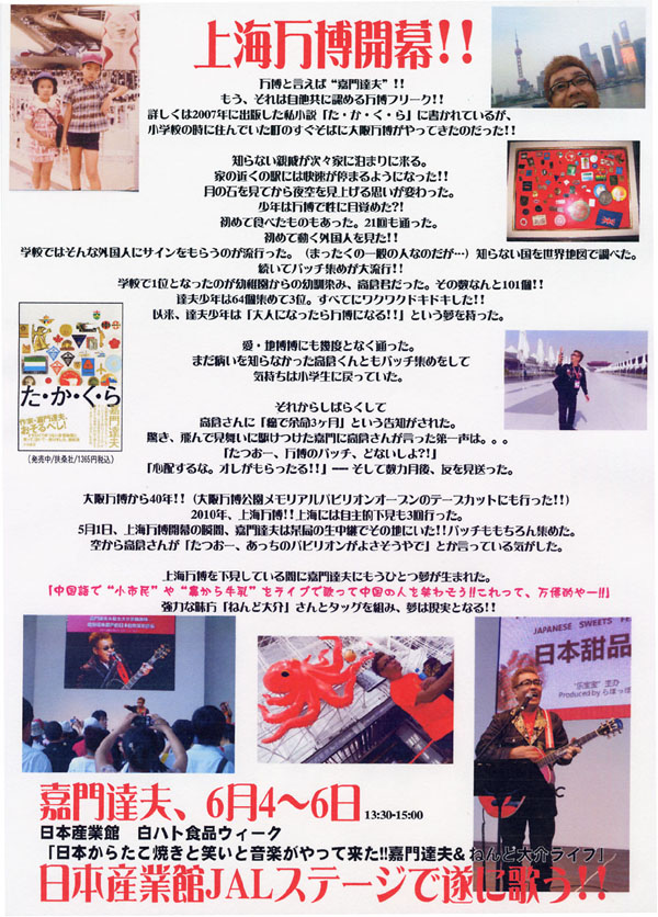 編集部にコラムニスト嘉門達夫さんのインフォが届きました。